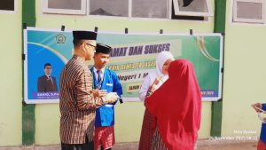 Acara pembukaan yang dilaksanakan di halaman madrasah ditandai dengan momen penuh makna oleh Kepala MTsN 1 Majene, Sahid, S.Pd..