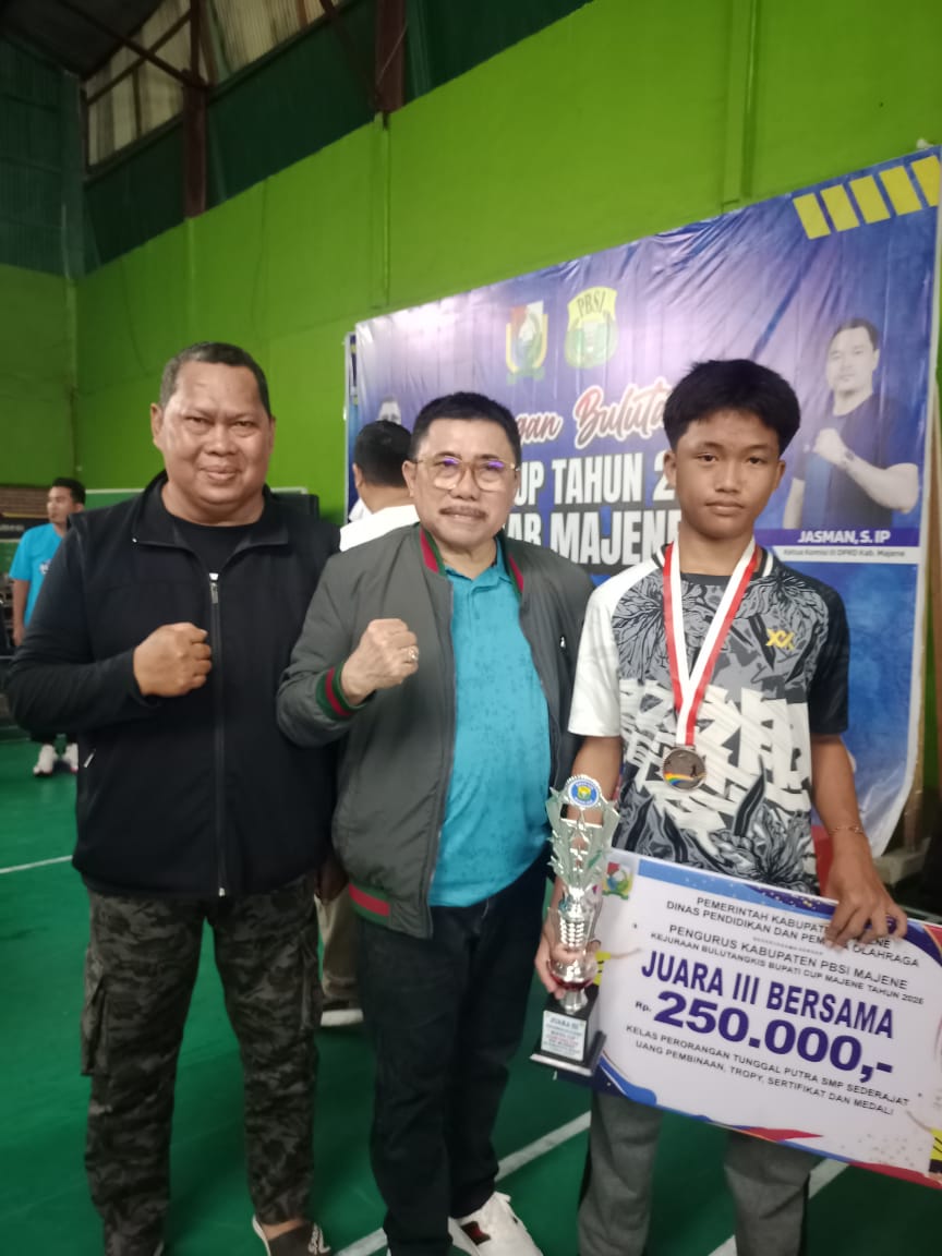 MAJENE – Prestasi membanggakan diukir oleh siswa Madrasah Tsanawiyah Negeri (MTsN) 1 Majene, Muhammad Nadzif Hamzah, yang sukses meraih gelar Juara III Bersama di kelas Perorangan Tunggal Putra SMP Sederajat dalam Kejuaraan Bulutangkis Bupati Cup Tahun 2025 Se-Kabupaten Majene.