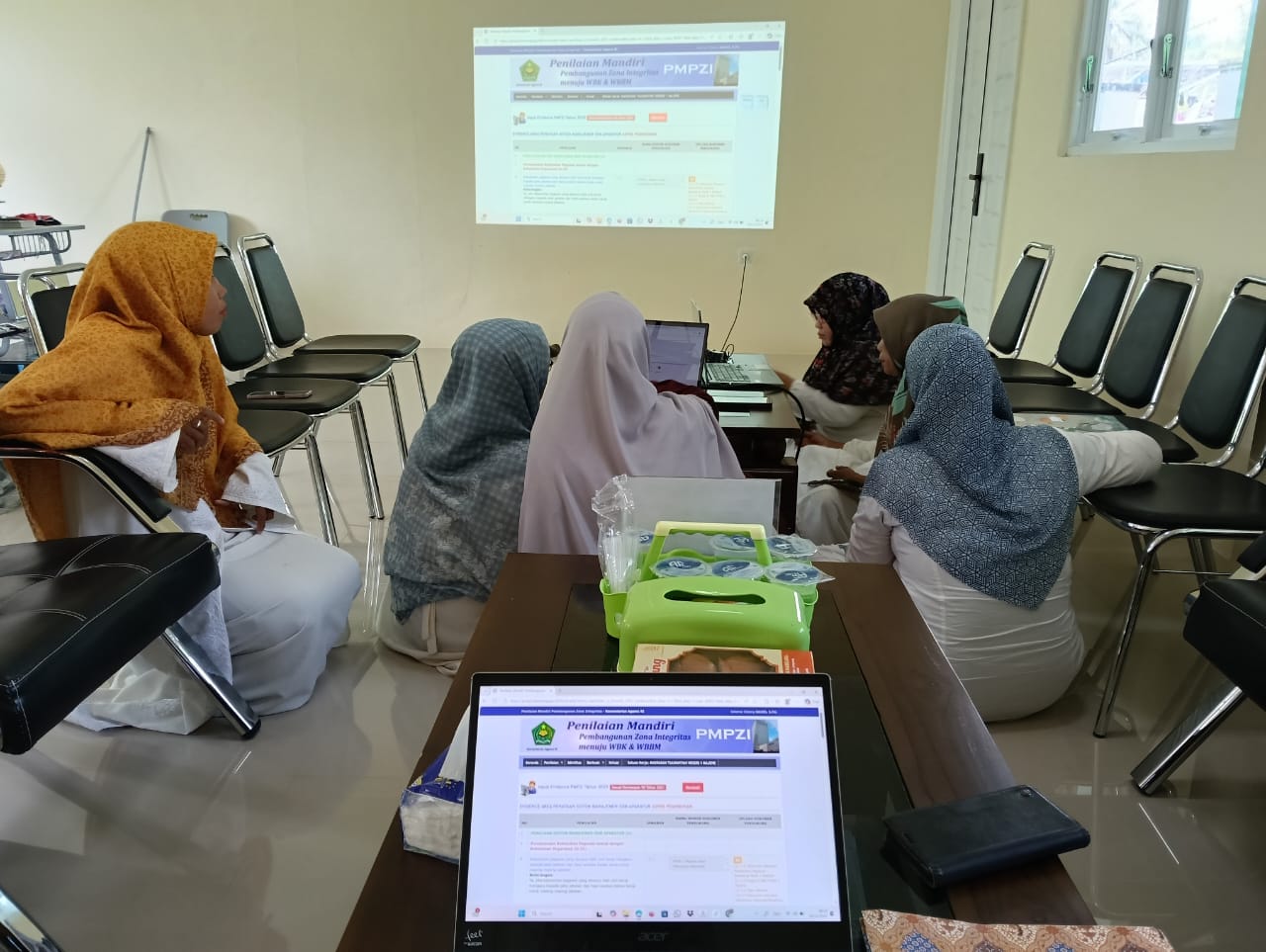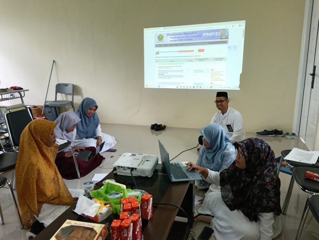 Dalam suasana yang fokus dan kolaboratif, tim ZI tampak memeriksa dan menata ulang secara cermat dokumen-dokumen yang menjadi bukti (eviden) penguatan enam area perubahan Zona Integritas. Dokumen-dokumen ini kemudian diverifikasi untuk diunggah pada laman penilaian mandiri PMPZI (Penilaian Mandiri Pembangunan Zona Integritas) yang menjadi acuan utama.
