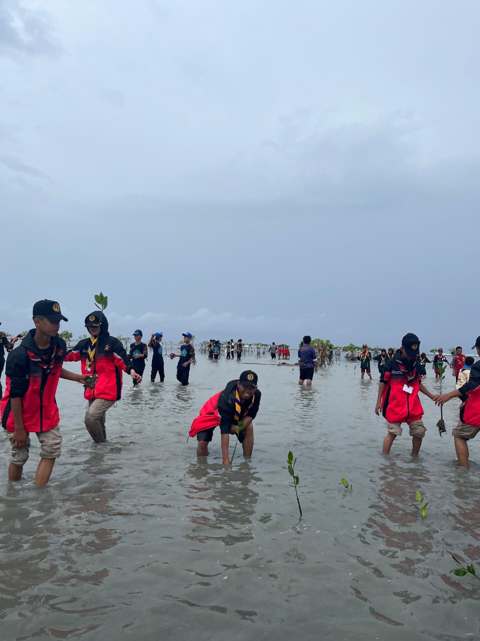 Kegiatan yang dirangkai dengan KEMBARA ini bertujuan untuk menumbuhkan kesadaran akan pentingnya ekosistem mangrove sebagai benteng alami pantai dari abrasi dan habitat bagi biota laut. Para peserta Impesa Scout terlihat kompak bahu-membahu menancapkan bibit di area pesisir yang telah ditentukan, di bawah arahan Pembina dan guru pendamping.
