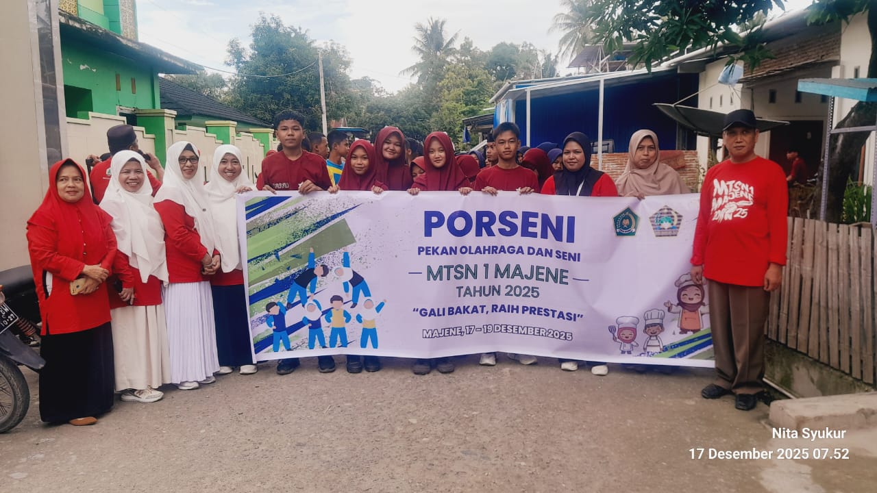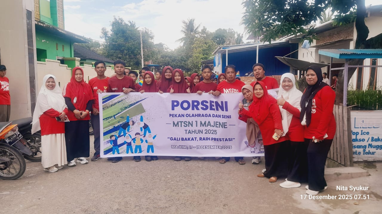MAJENE, 17 Desember 2025 – MTsN 1 Majene kembali menggelar ajang tahunan yang paling dinantikan oleh seluruh siswa, yakni Pekan Olahraga dan Seni (PORSENI) Tahun 2025. Mengangkat tema “Gali Bakat, Raih Prestasi”, kegiatan ini dijadwalkan berlangsung selama tiga hari, mulai Rabu hingga Jumat (17–19 Desember 2025).