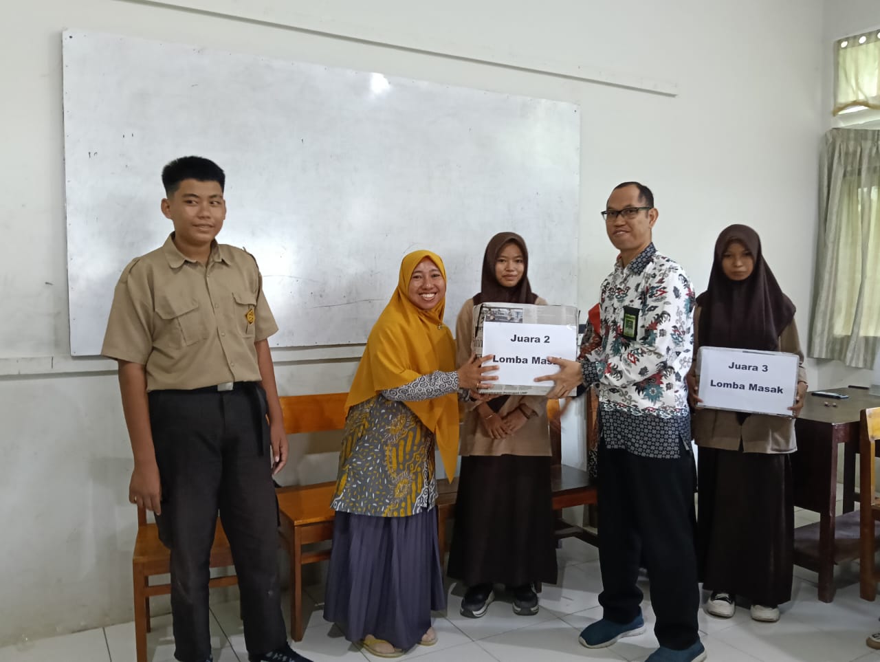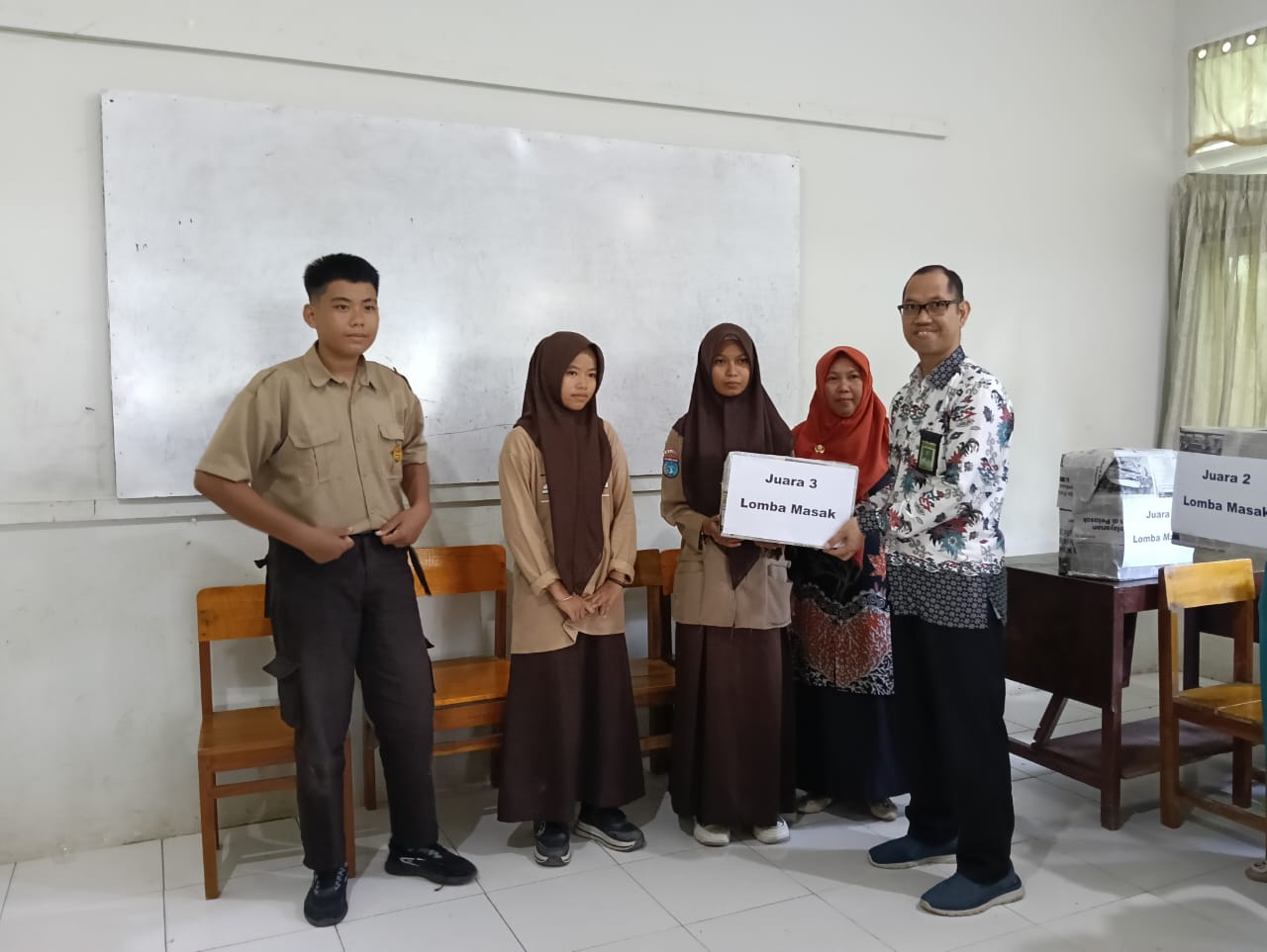 Penyerahan hadiah dilakukan secara simbolis dengan pemberian bingkisan yang dibungkus rapi, menambah kesan spesial bagi para pemenang yang telah mengharumkan nama kelasnya masing-masing.