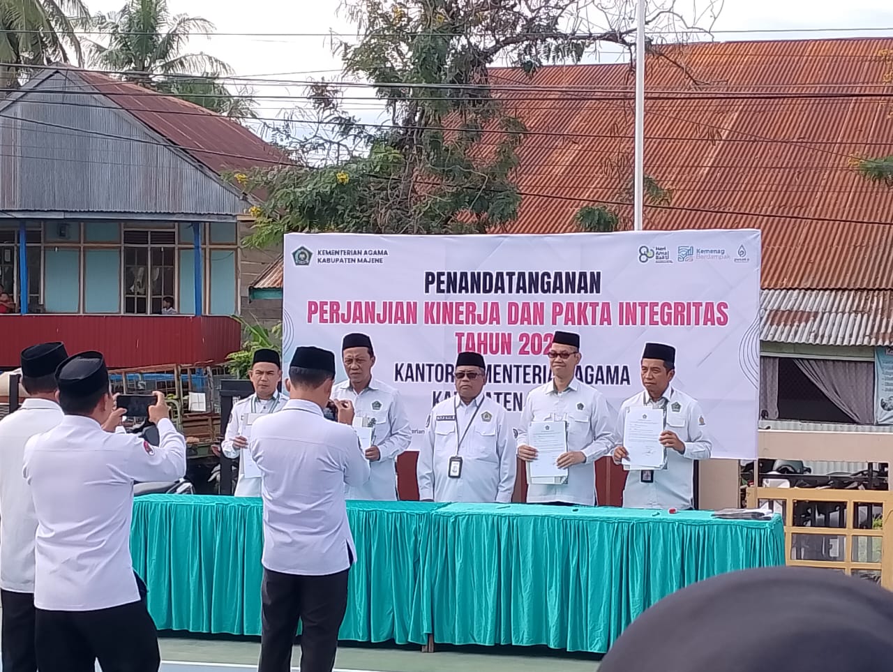 “Pakta integritas dan perjanjian kinerja ini adalah janji kita kepada publik dan negara. Di MTsN 1 Majene, kami berkomitmen penuh untuk mencapai target-target pendidikan yang telah ditetapkan serta memastikan setiap pelayanan dilakukan dengan prinsip integritas tinggi tanpa pungli,” ujarnya.