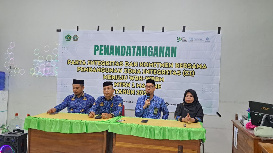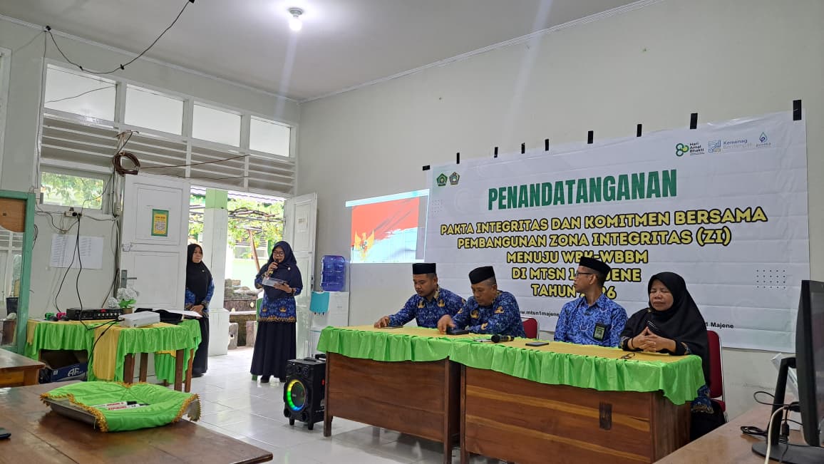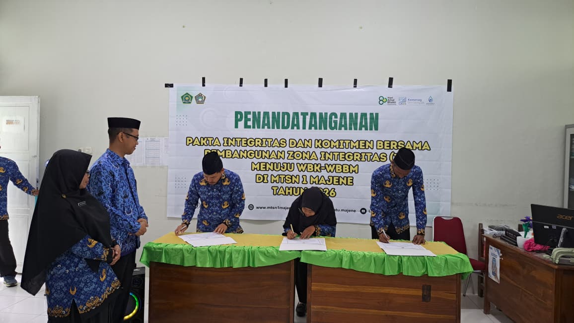 MAJENE – Dalam upaya memperkuat tata kelola lembaga yang bersih, transparan, dan akuntabel, MTsN 1 Majene menyelenggarakan kegiatan Penandatanganan Pakta Integritas dan Komitmen Bersama Pembangunan Zona Integritas (ZI) menuju Wilayah Bebas dari Korupsi (WBK) serta Wilayah Birokrasi Bersih dan Melayani (WBBM) untuk tahun 2025.