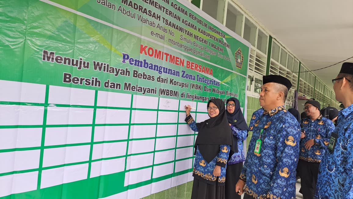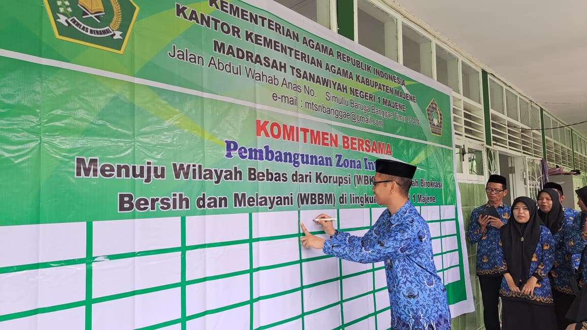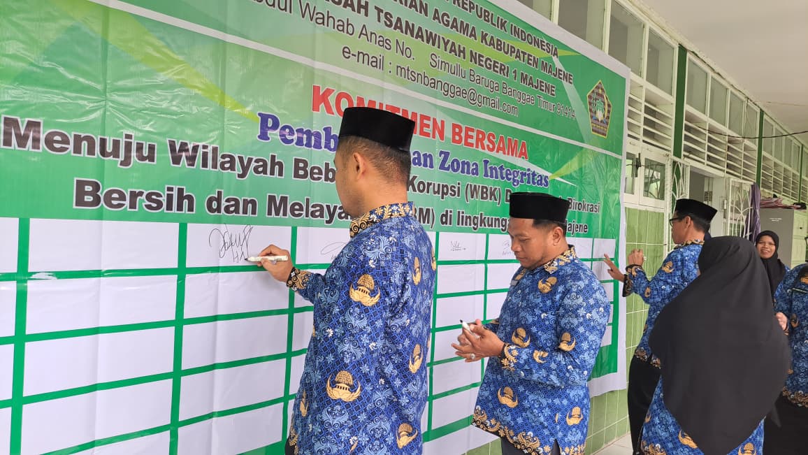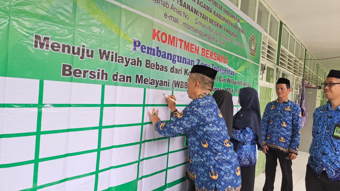 “Penandatanganan ini adalah janji kita bersama untuk memberikan pelayanan terbaik bagi siswa, orang tua, dan masyarakat. Kita berkomitmen penuh mewujudkan MTsN 1 Majene sebagai lembaga yang bersih dari gratifikasi dan korupsi, serta unggul dalam pelayanan,” tegas beliau.