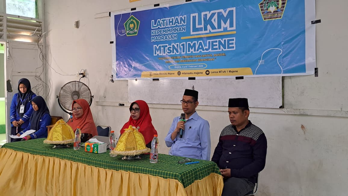 Majene (MTsN 1 Majene) – Pada hari ini, Jumat, 6 Februari 2026, bertempat di Aula MTsN 1 Majene, telah resmi dibuka kegiatan Latihan Kepemimpinan Madrasah (LKM). Kegiatan yang dimulai sejak pagi hari ini diikuti oleh seluruh pengurus organisasi siswa dengan penuh antusias.