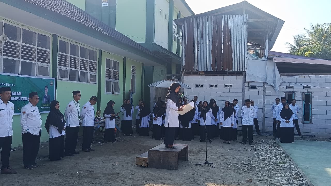 Majene (MTsN 1 Majene) – MTsN 1 Majene menggelar apel pembukaan Ujian Madrasah Berbasis Komputer (UMBK) sekaligus pengukuhan Agen Perubahan Tahun 2026 pada pagi ini. Meskipun Pengawas Madrasah berhalangan hadir, rangkaian acara tetap berlangsung khidmat dan penuh semangat di bawah arahan langsung Kepala Madrasah.